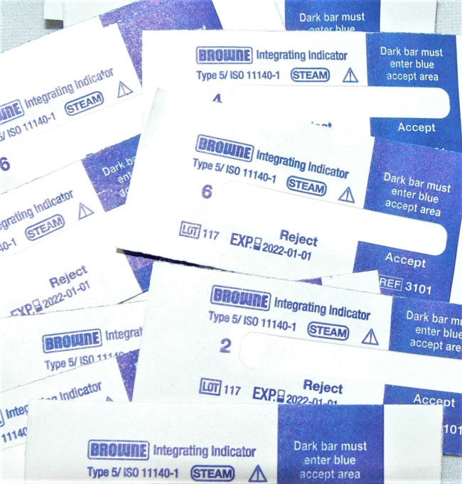 Damp Indikator type 5 - 250 STK. Multivariabel, kemisk autoklavekontrol, der tester temperatur og tryk. Kan anvendes til både 121º og 134º. Skal anvendes ved hver kørsel. Pakket i lystæt foliepose med genluk. Kan benyttes til store og små autoklaver, samt DAC 2000 + universal.