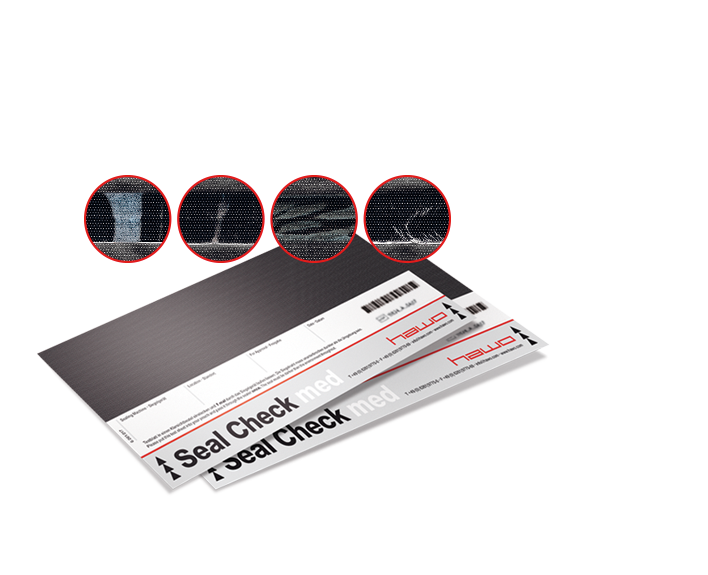 Den mørke indikatorstrimel, gør at fejl hurtigt opdages. Hawo Seal Check kommer i en brugervenlig pakke designet specielt til og med et referencekort til vurdering af forseglingen. Hawo Seal Check egner sig ikke til poser med fold.