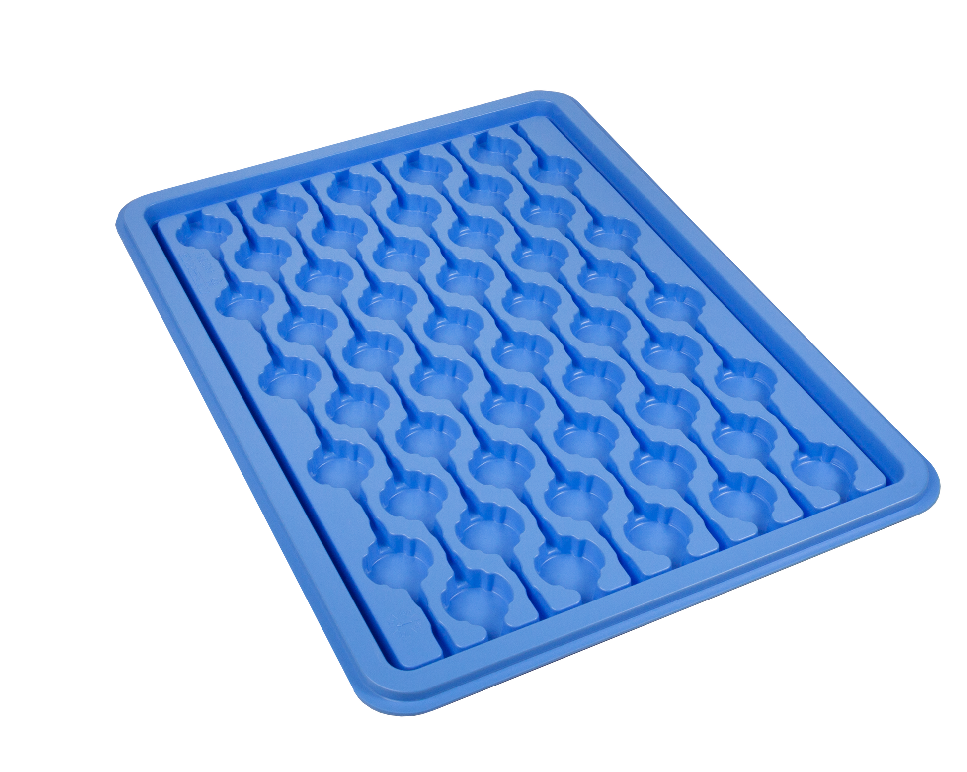 Denne mellemstore, stabelbare distributionsbakke har 10 riller og 50 positioner og er velegnet til transport af Wiegand MediCups og små, mellemstore og store MediDispensers. Rillerne og fordybningerne gør det muligt for kopperne og dispenserne at forblive stabile på bakken. Patient- og medicindata kan integreres ved hjælp af etikettholdere og etiketter.